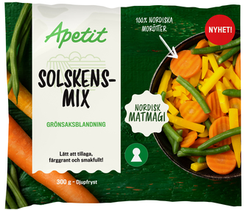 Solskensmix är en krispig grönsaksblandning som passar bra till wok- och gryträtter, omeletter och efter uppvärmning till sallad. Snabbt, enkelt och gott.