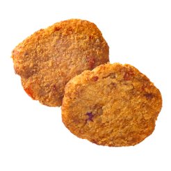 Panerad grönsaksbiffar tillverkad av paprika, kikärter och chili. Glutenfri. Passar bra som ett vegetariskt alternativ.